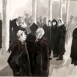 We can hear the voices of the guests drawn in two shades of the black ink.